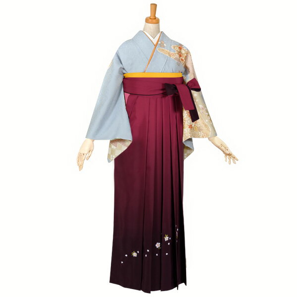 ) ●バスト:〜92cm 【着物寸法】 ●袖丈:48.5cm ●裄:66cm 【素材】正絹100% 【セット内容】 1) 振袖 2) 袴 3) 半幅帯 4) 重ね衿(伊達衿) 5) 草履・バッグ 6) 肌着(きものスリップ)7) 長襦袢(着物に合った色柄で、衿は刺繍を施した半衿付き) 8) コーリンベルト 9) 帯板 10) 衿芯 11) 腰紐5本 12) 伊達締め2本 13) 足袋(サービス品) 【レンタル期間】4泊5日(利用日3日届け、利用日翌日返却) 【HOT KEYWORD】袴 レンタル 先生 卒業式 謝恩会 教員 先生 教職員 卒業式袴 レンタル着物 レンタル袴 袴 女袴 シンプル袴 大人袴 袴セット 女性 女 レディース フルセット はかま 貸衣装 rental 卒園式 お稽古 発表会 習い事 先生袴カテゴリー 品番/商品名 HG421/ブルー 雲取雪輪唐花文 淡い水色地に様々な古典柄を雲取りで配し、格調高い唐花文や雪輪文、華やかな四季の花々を描きました。