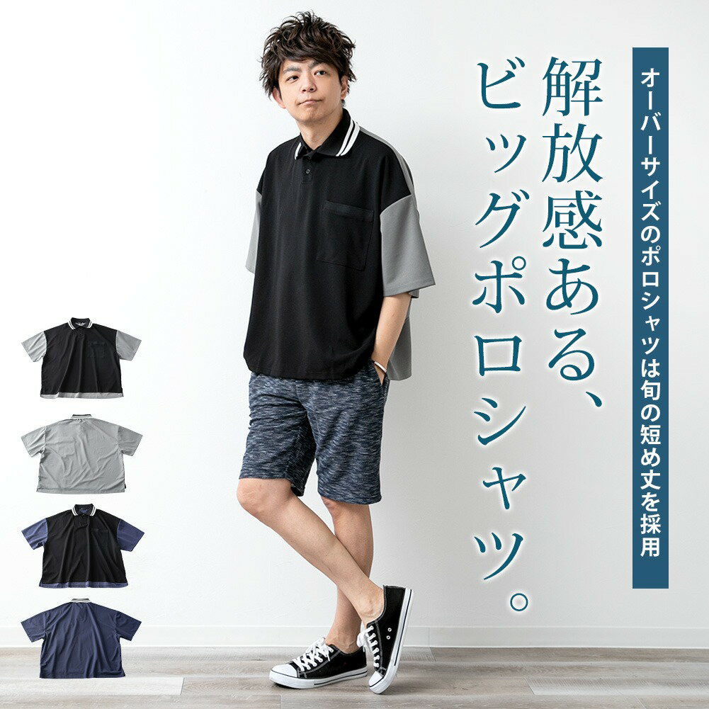 ポロシャツ メンズ 半袖 クレイジー ビッグシルエット ゆったり おしゃれ 半袖ポロシャツ ビッグポロシャツ 夏物 ポロ 全2色 720446