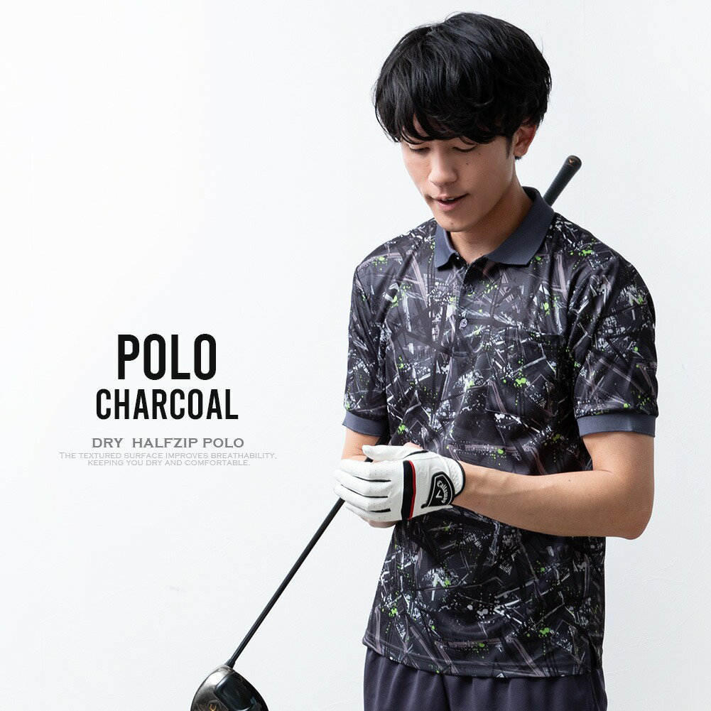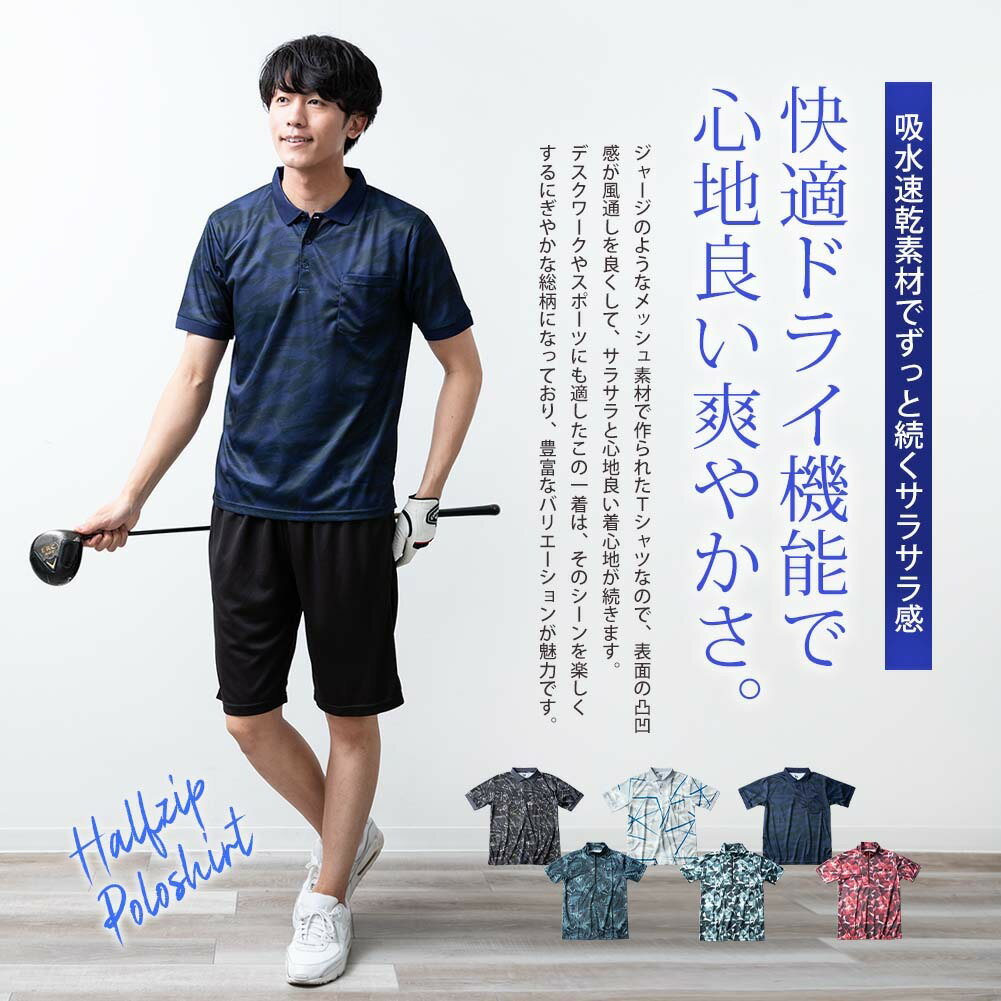 ゴルフウェア メンズ ポロシャツ 吸水速乾 ハーフジップ ポロ 半袖 半袖シャツ 涼しい 夏 ハイネック スポーツウェア ゴルフ ストレッチ 全7色 28353