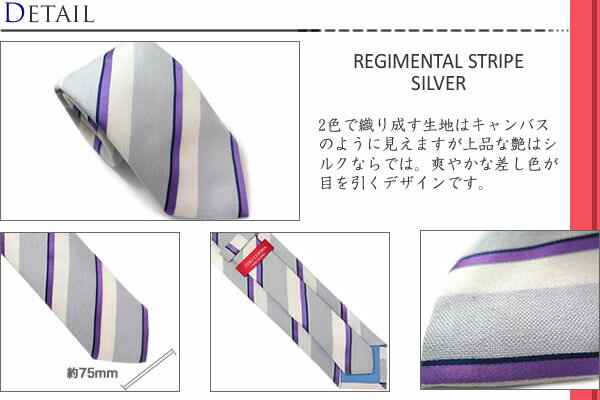 REGIMENTAL STRIPE SILVER SILK TIE 2色で織り成す生地はキャンバスのように見えますが上品な艶はシルクならでは。
