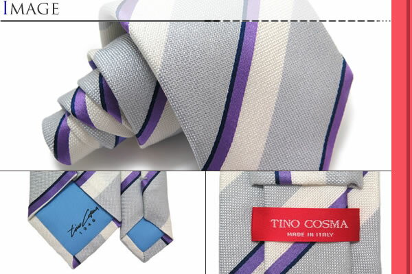 TINO COSMA ティノコズマ REGIMENTAL STRIPE SILVER SILK TIE レジメンタル ストライプ シルク ネクタイ(シルバー)【イタリア製】【ブランド】