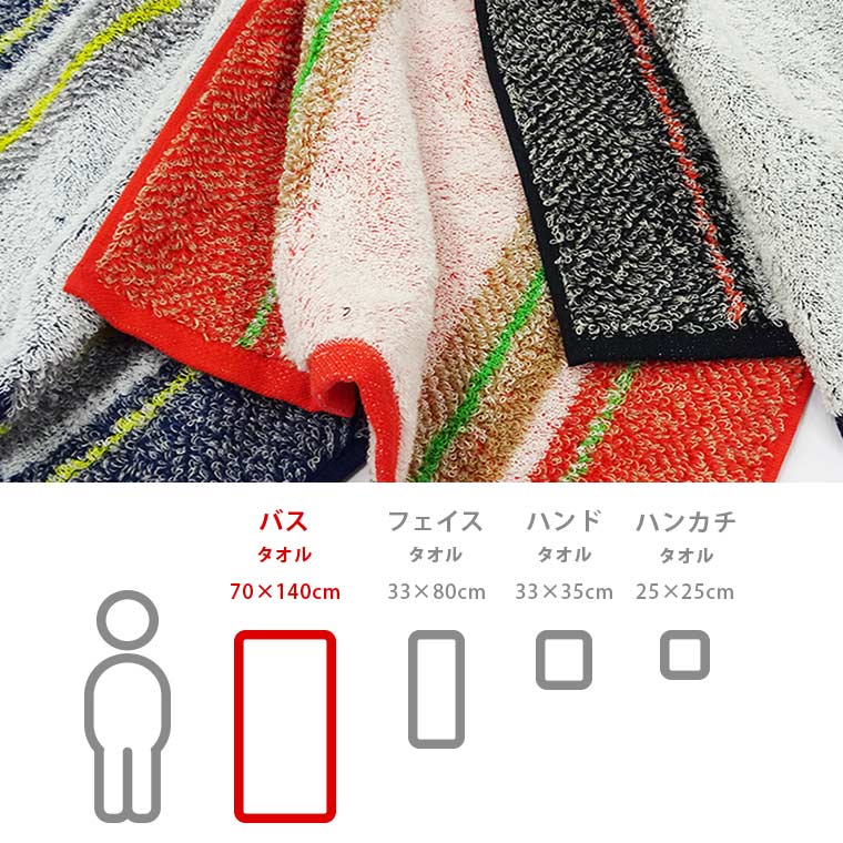 フェイスタオルは、70cm×140cm。